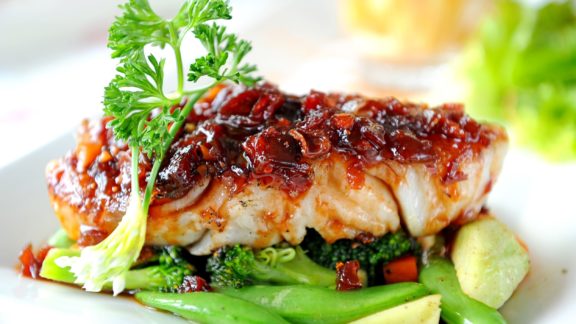 TuesdayCaramelized Atlantic Black Cod – Asian Spring Vegetables – Anson Mills Wild Rice – Dinner Salad