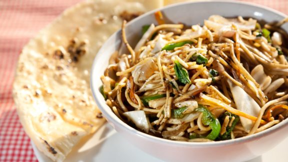TuesdayVegan Rice Noodles – Wok Fried Vegetables – Cucumber Salad – Naan