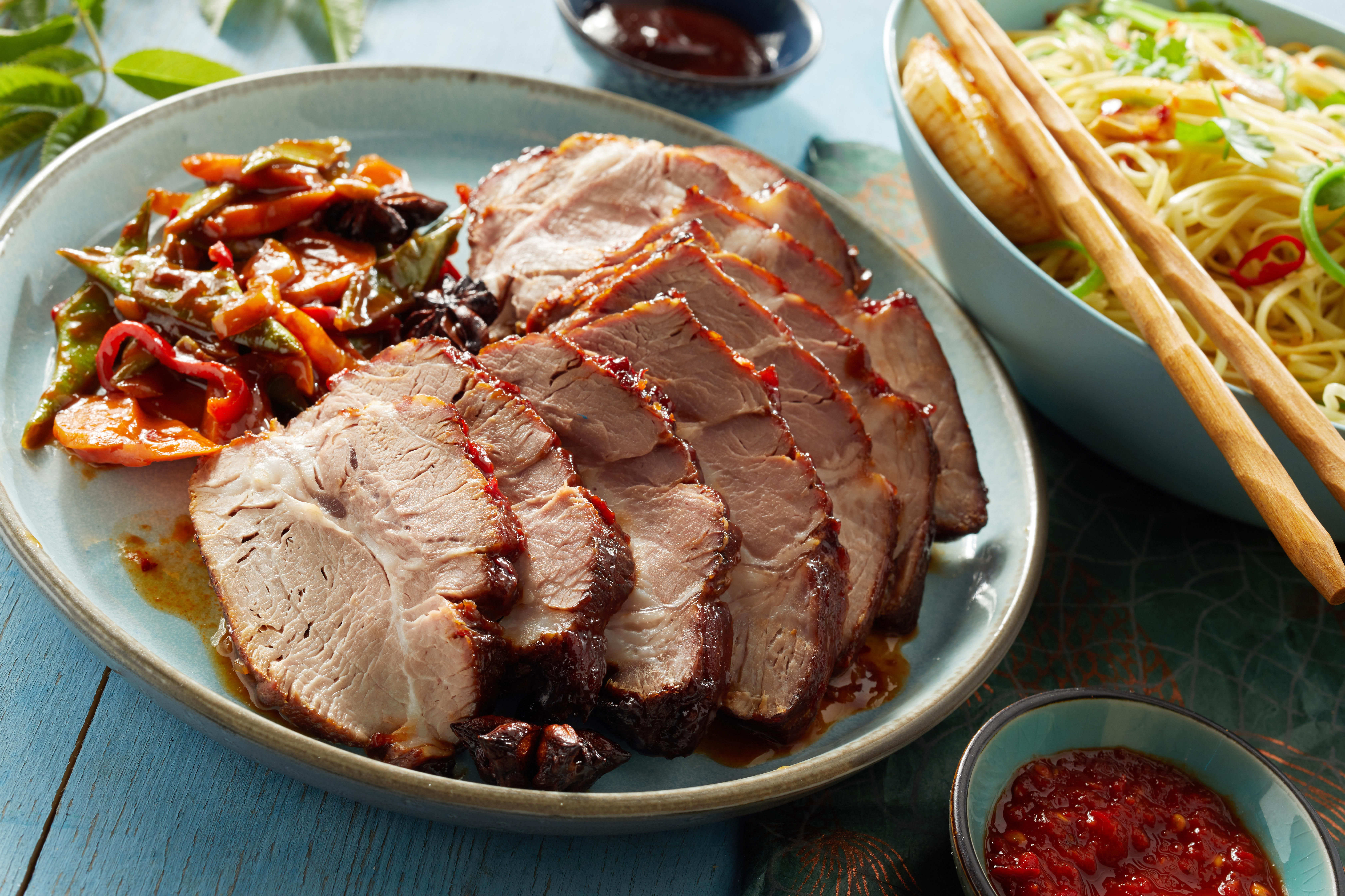 Sous Vide Chinese Pork Tenderloin Bowl, Zucchini Noodles with Ponzu, Chow Mein, Vanilla Greek Yogurt w/fruit