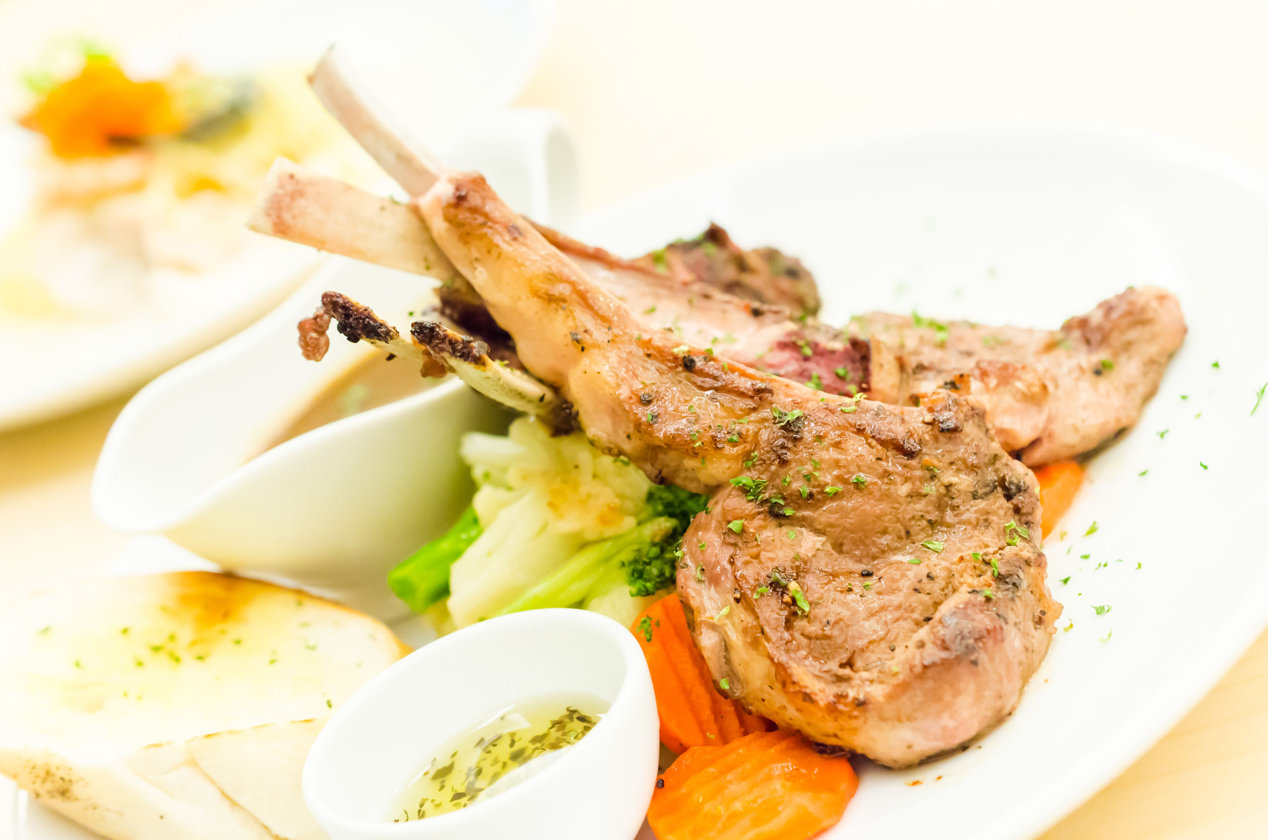 Grilled New Zealand Lamb Chops, Roasted Carrots, Broccoli and Cauliflower, Wild Rice, Dinner Salad