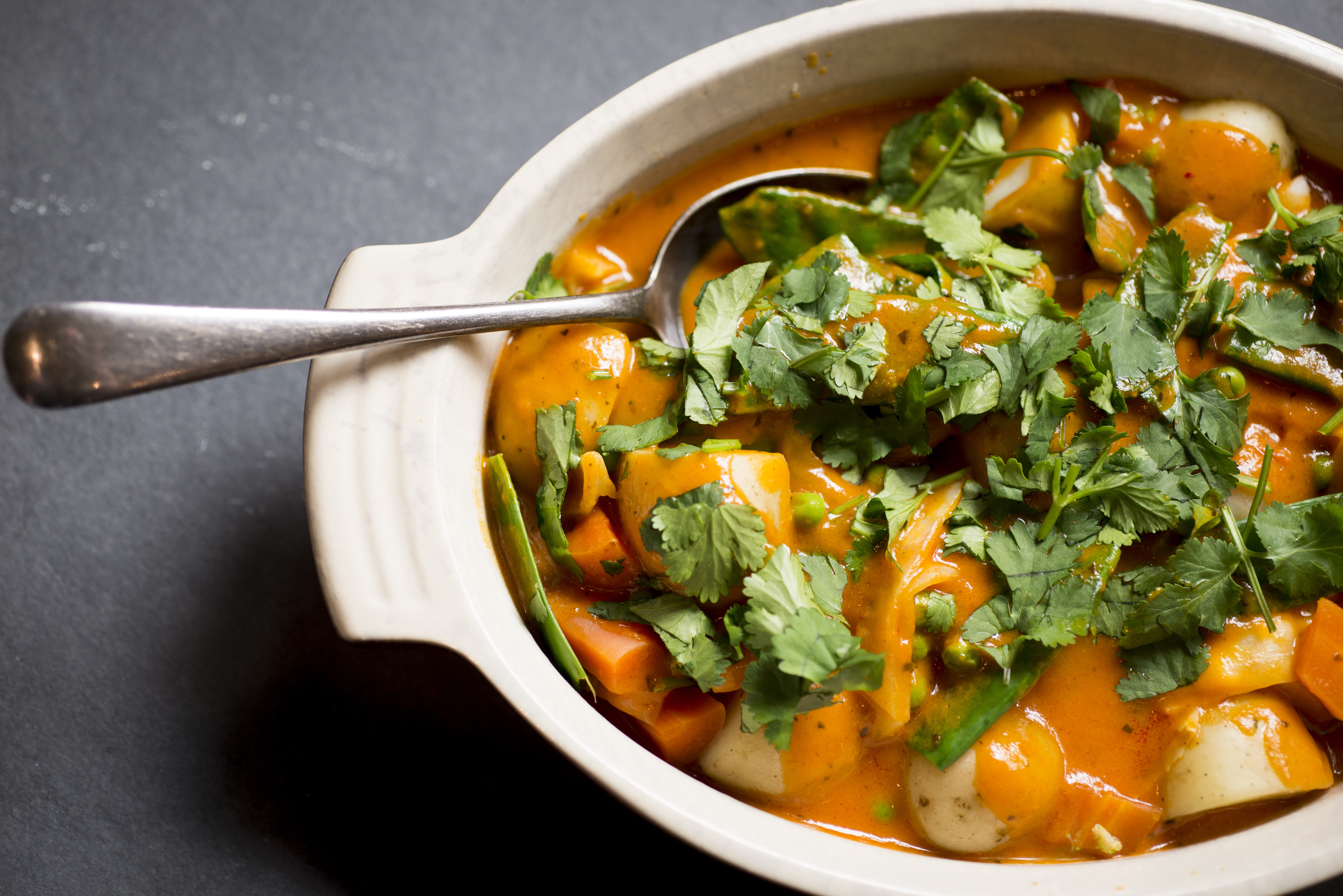 Makhani Curry Bowl, Turmeric, Root Vegetables, Chick Pea, Cilantro, Naan Bread, Aloo Gobi, Chopped Salad (w dinner)